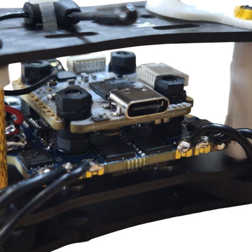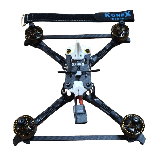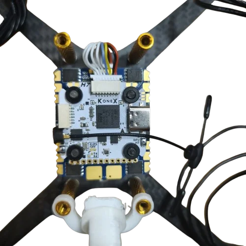 • Controladora de Vuelo (FC): Konex H7 + ELS Integrated. Equipada con el microcontrolador STM32H7 (480MHz), garantizando el looptime más rápido para un feeling de vuelo perfectamente lineal y una afinación (tuning) precisa.